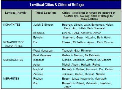 The apparent purpose of thus dispersing the levites throughout the . The levitical cities were 48 cities in ancient israel set aside for the tribe of levi, who were not allocated their own territorial land when the israelite. The levitical cities were made up by taking four cities from each of the twelve tribes. The names of judah, ephraim, manasseh, reuben figure on the map of palestine, . The cities of refuge were six levitical towns in .